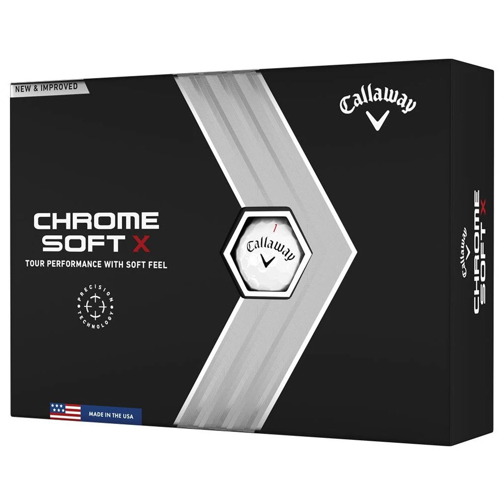Over the past few seasons the Callaway Chromesoft golf ball has firmly established itself as one of the most popular premium balls on the market. There are now three different models to choose from with each one offering different characteristics that allow the golfer to find the perfect fit for their game. All three models have been significantly upgraded for the 2022 season, delivering class leading statistics in all the crucial areas. The Callaway Chromesoft-X ball is the middle ball of the three models and delivers high levels of greenside spin allowing for aggressive shots with the scoring clubs. It has a firmer feel than the standard Chromesoft and produces slightly more ball speed with driver. The ’22 version of the Callaway Chromesoft-X golf ball features a new Hyper Elastic SoftFast core which produces increased driver speed over the ’20 model and produces the tour level speed, spin and control that the better player demands. It also benefits from their New Tour Aero technology which produces a powerful, consistent ball flight with lower drag that will cut through any head wind.