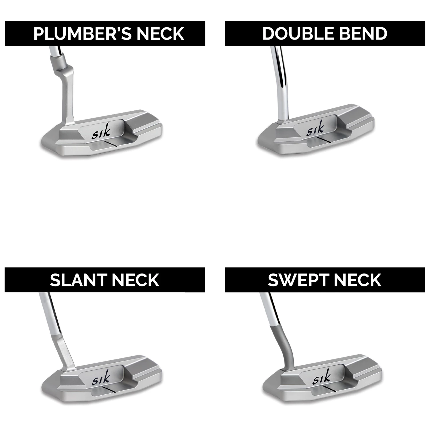 The SIK Pro C-Series Putter is offered with the Plumbers Neck as standard which produces a mid-toe hang (45-deg), and it is ideal for those golfers who have a slightly arcing putting stroke. On the custom tab page for this putter, you can request different lofts, different lie angles and different sightlines and choose from four different neck designs allowing your to create the perfect SIK putter for your game. The neck designs available have the following characteristics :-