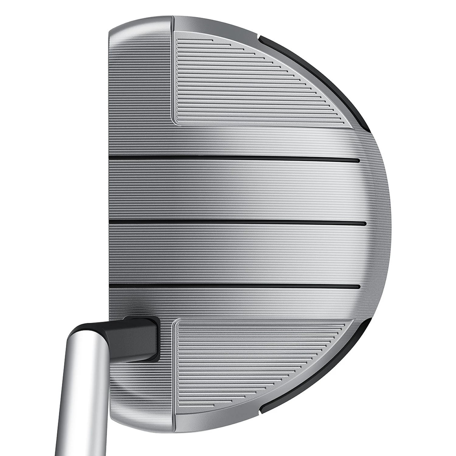 The tri-sole design of the soleplate prevents the club from moving when placed on the ground, encouraging the clubface to be presented squarely to the ball. It also has two different hosel options, a small slant (21° toe-hang – ideal for strokes with a slight arc) and a single bend (face balanced – ideal for straight back, straight through strokes)